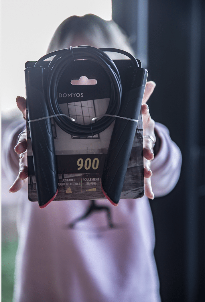 • La corde à sauter Domyos pour une séance de sport à la maison.